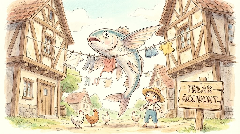 도저히 일어날 것 같지 않은 상황에서 발생한 매우 드물고 이상한 사고를 의미합니다. 예측할 수 없는 불운을 강조할 때 사용합니다.