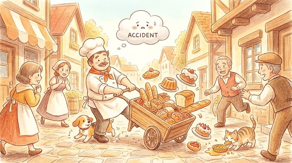 해석: 뜻하지 않게 일어난 나쁜 일이나, 고의가 아닌 우연한 사건을 의미합니다.