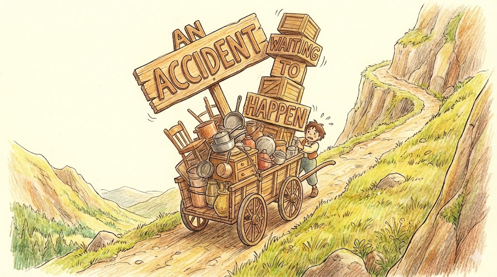 상태가 너무 위험하거나 관리가 소홀하여, 사고가 나는 것이 시간문제일 뿐 필연적인 상황을 비유적으로 표현합니다.