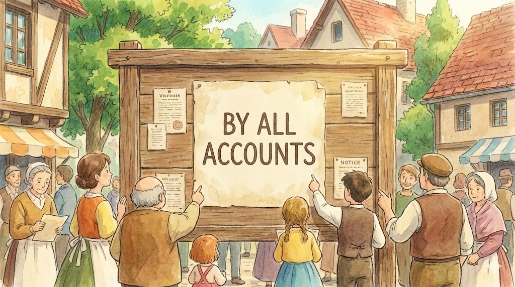 예문: By all accounts, the festival was a huge success this year. (모든 평판에 따르면, 올해 축제는 큰 성공이었다.)