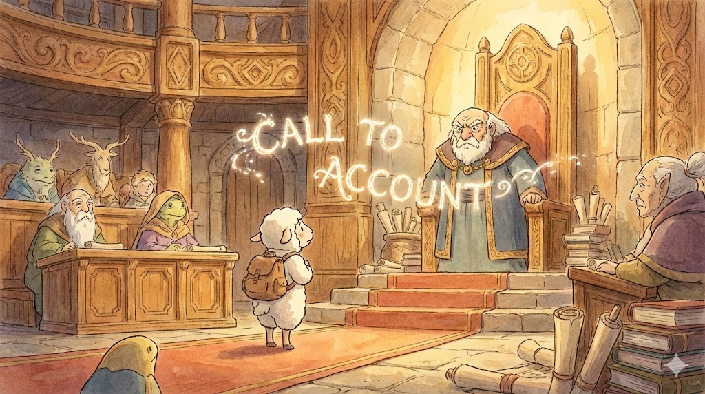 해석: 누군가에게 잘못이나 실수에 대해 설명하게 하고 책임을 지게 하는 것입니다.