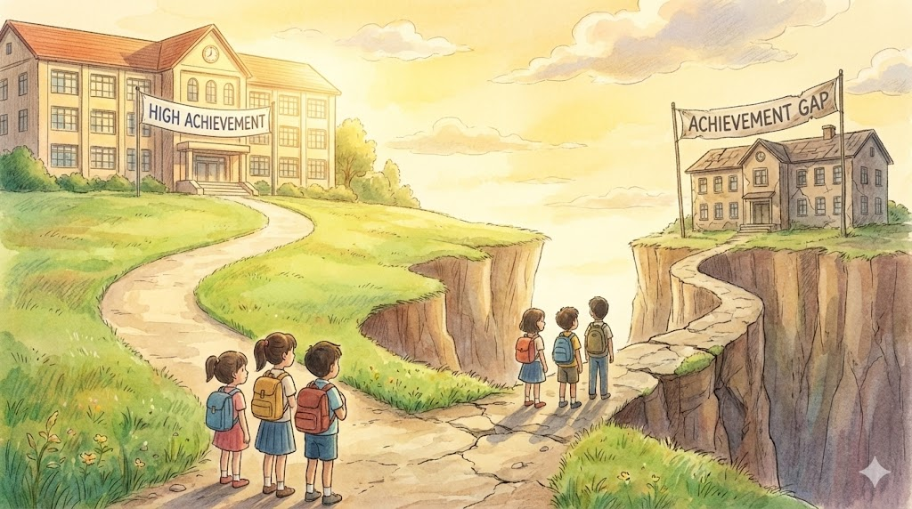 - 해석: 서로 다른 집단(예: 소득 수준, 인종) 사이에서 나타나는 학업 성적이나 성과의 차이입니다.