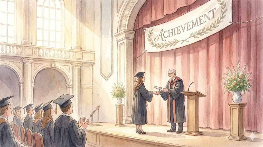 - 해석: 학교 교육을 통해 얻은 지식이나 성적, 학문적 결과물을 의미합니다.