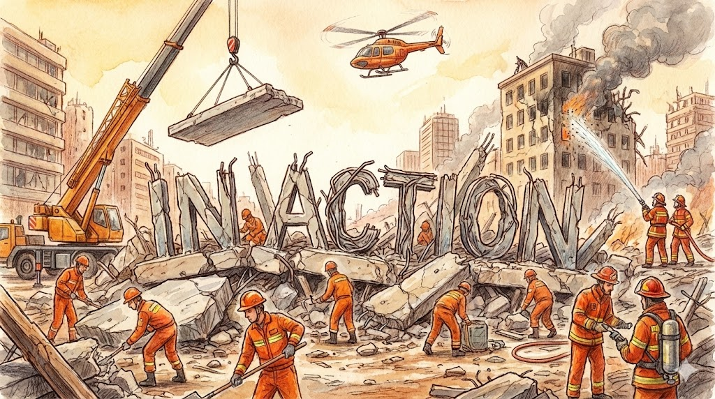 - 해석: 상황이 발생했을 때 지체 없이 민첩하게 움직이기 시작하는 모습입니다.
