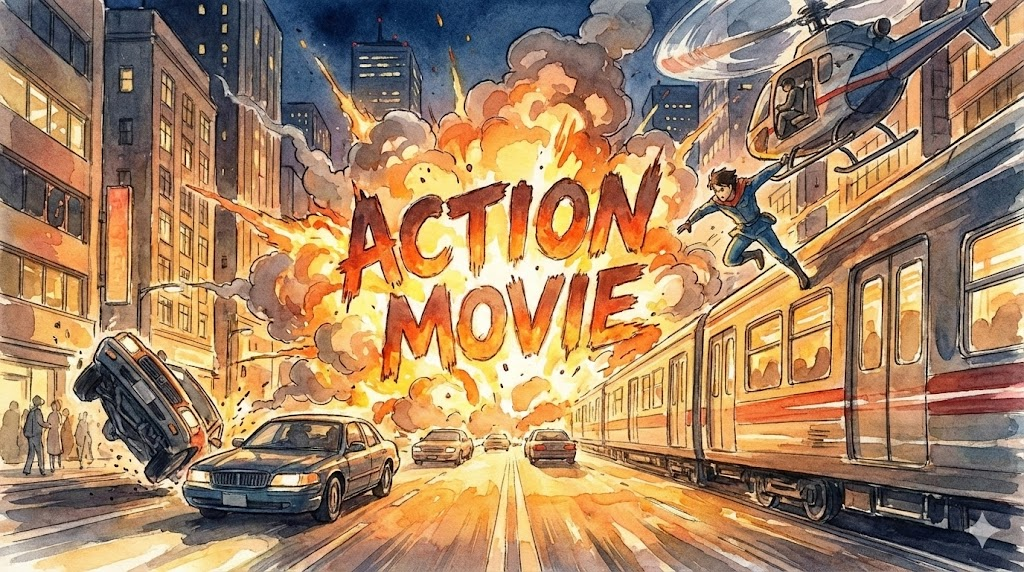- 해석: 싸움, 추격, 폭발 등 역동적이고 신체적인 움직임이 중심이 되는 영화 장르입니다.