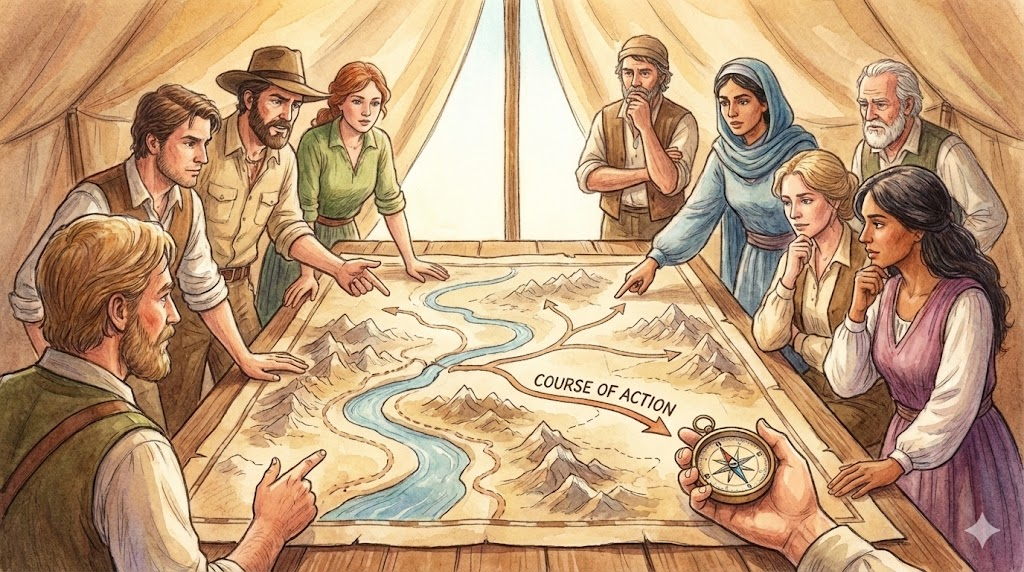 - 예문: After the meeting, the board decided on a new course of action. (회의 후, 이사회는 새로운 대처 방안을 결정했다.)