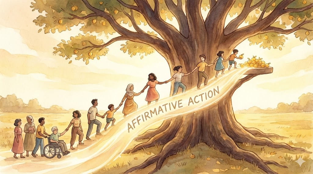 - 해석: 소수자나 약자가 사회적 차별을 받지 않도록 고용이나 교육에서 우대 혜택을 주는 정책입니다.