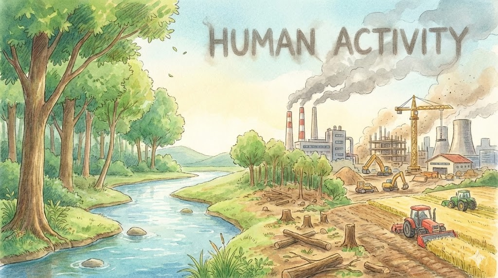 인간 활동은 환경 파괴나 기후 변화를 다루는 지문에서 원인을 설명할 때 핵심적으로 사용됩니다. 인간의 개입이 자연의 자정 능력을 넘어섰음을 비판하거나 지속 가능한 발전을 촉구하는 논의의 중심 키워드입니다.