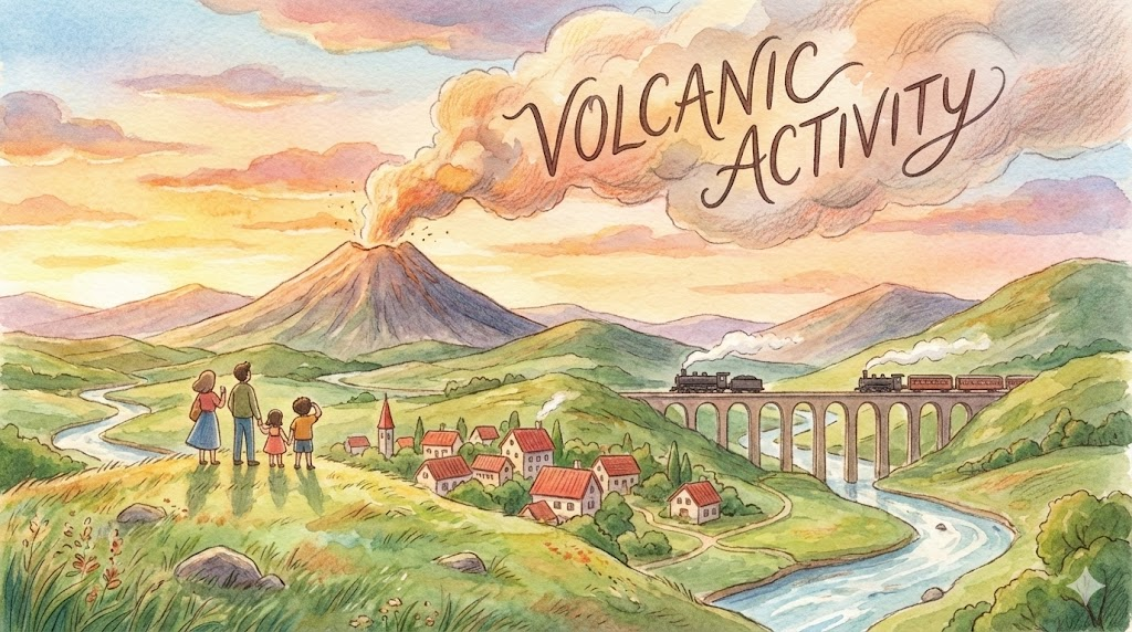 - 해석: 마그마의 분출, 가스 배출 등 화산과 관련된 지질학적 움직임이나 현상을 뜻합니다.