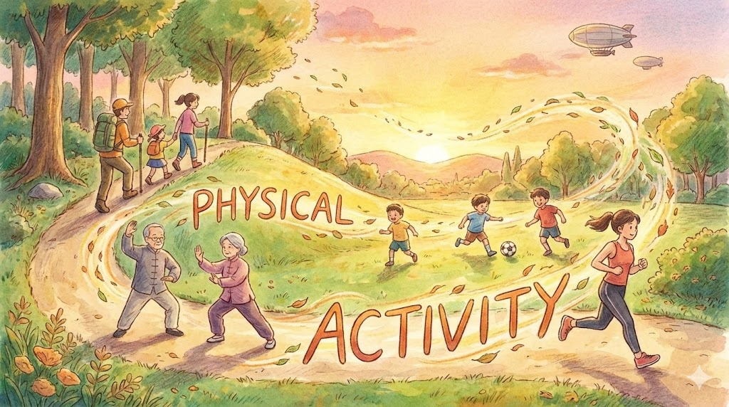 - 해석: 걷기, 달리기, 운동 등 몸을 움직여 에너지를 소모하는 모든 활동입니다.
