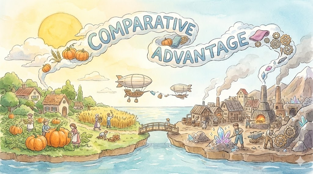 사회탐구(경제)나 영어 비문학 지문에서 **비교 우위(comparative advantage)**와 **절대 우위(absolute advantage)**는 무역의 원리를 설명하는 핵심 개념입니다. 절대적인 생산량의 차이인지, 기회비용의 차이인지 구분하는 것이 독해의 관건입니다.