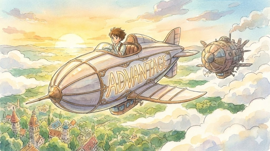 - 해석: 경쟁 상대보다 더 나은 조건이나 위치에 있는 상태입니다.