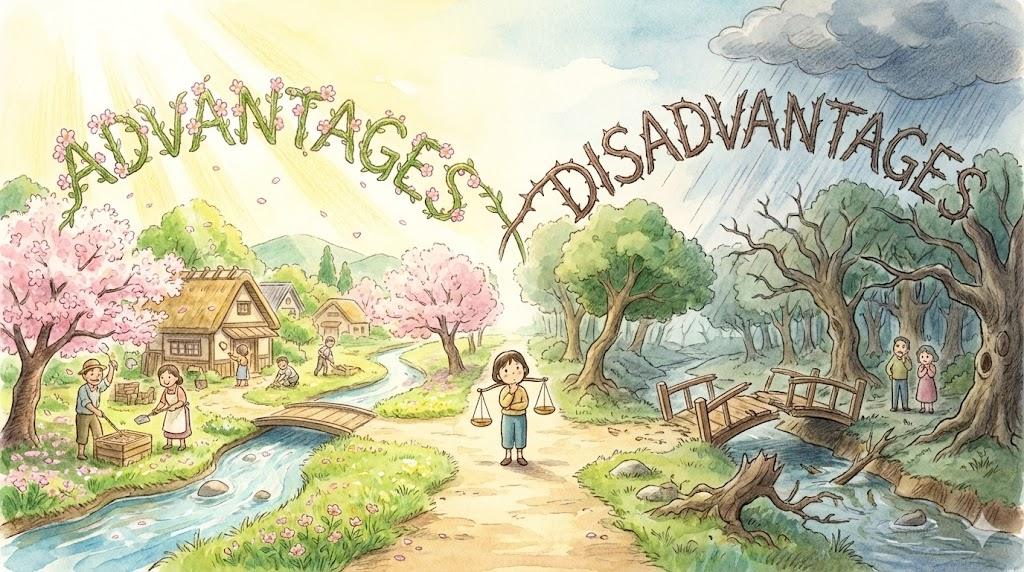 - 예문: We discussed the advantages and disadvantages of moving to the countryside. (우리는 시골로 이사하는 것의 장단점을 논의했다.)