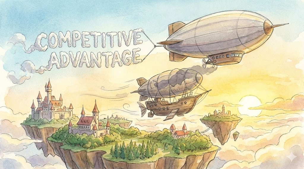 - 해석: 경쟁자보다 더 나은 성과를 낼 수 있게 해주는 기업이나 개인의 독보적인 능력이나 조건입니다.