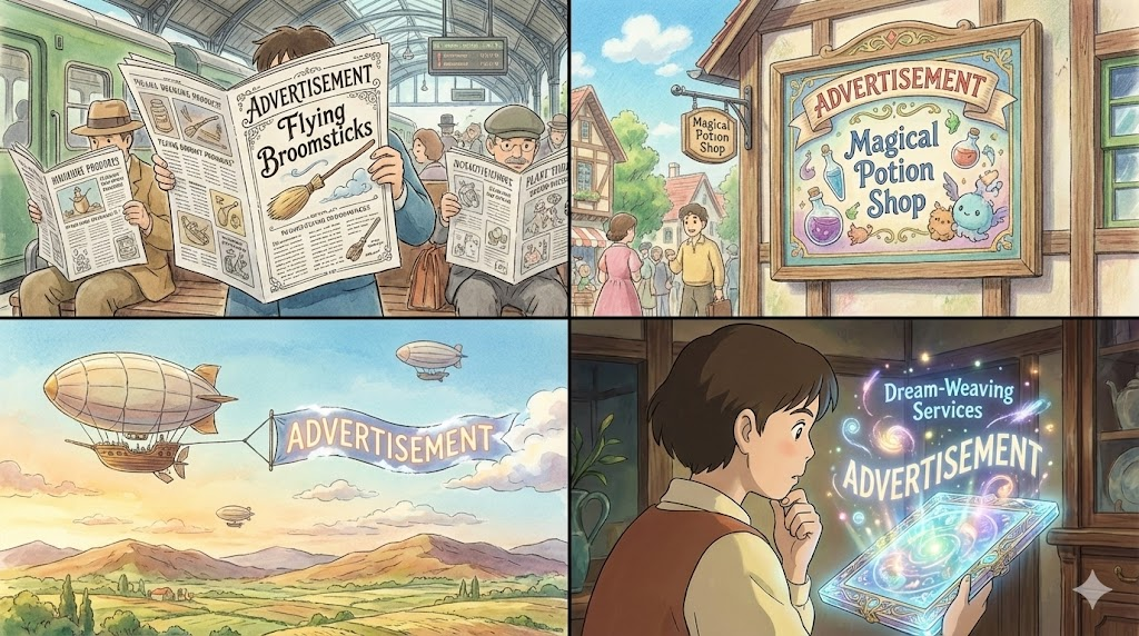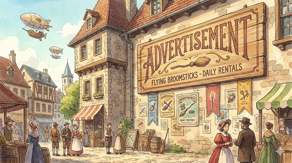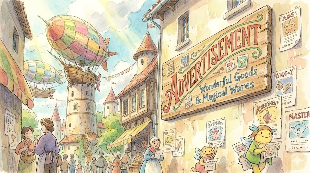 | 라틴어 advertere (주의를 돌리다) | "마음을 돌려 보게 함" | 알림/고지 (초기) -> 상업 광고 (현대) -> (비유) 과시/선전 |