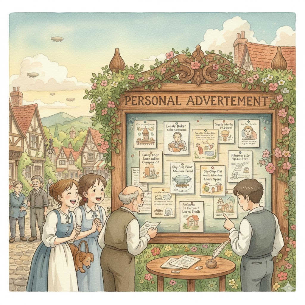 - 해석: 친구나 연인, 배우자를 찾기 위해 개인이 신문이나 잡지 등에 싣는 광고입니다.