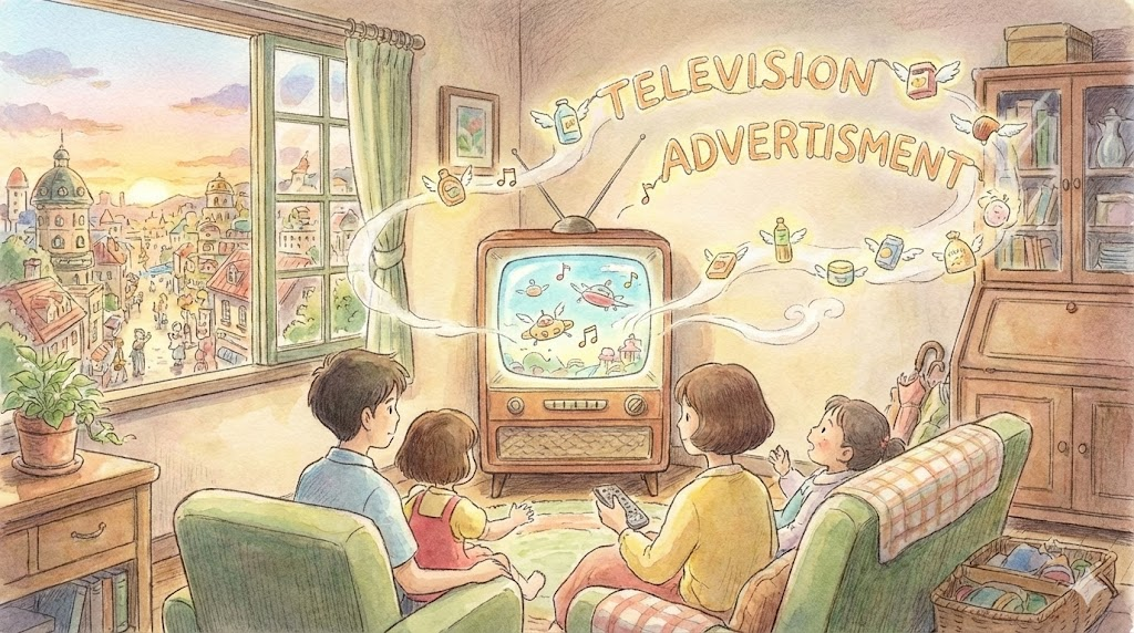 - 해석: 텔레비전 방송 시간 중간에 송출되는 영상 광고입니다.