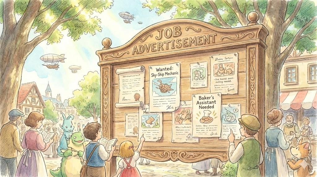- 해석: 직원을 채용하기 위해 신문이나 웹사이트 등에 게시하는 모집 공고입니다.
