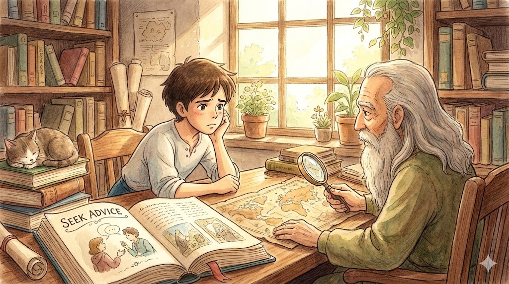 - 해석: 전문가나 신뢰할 수 있는 사람에게 의견을 묻거나 도움을 요청하는 행위입니다.