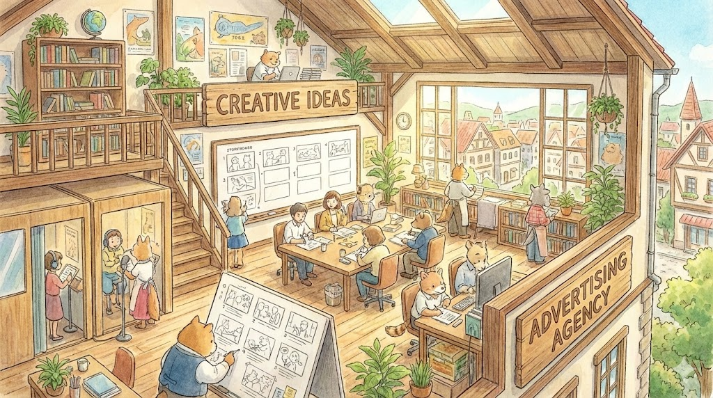 - 해석: 다른 기업을 대신하여 광고를 기획, 제작, 집행하는 전문 회사입니다.