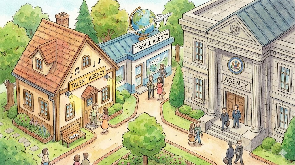 Agent는 대리인(사람)이고, Agency는 그 대리 업무를 수행하는 회사나 기관, 혹은 대리하는 힘(작용) 자체를 의미합니다. 비즈니스 지문에서는 이 둘의 관계(주인-대리인 문제 등)를 다루기도 합니다.