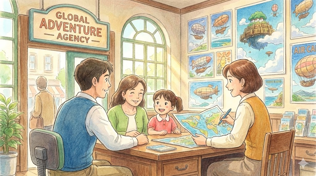 - 해석: 여행 계획, 예약, 티켓 발권 등을 대행해 주는 회사입니다.