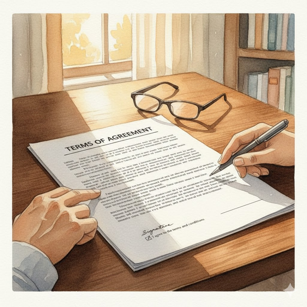 - Please review the terms of agreement before signing. (서명하기 전에 계약 조건을 검토해 주세요.)
