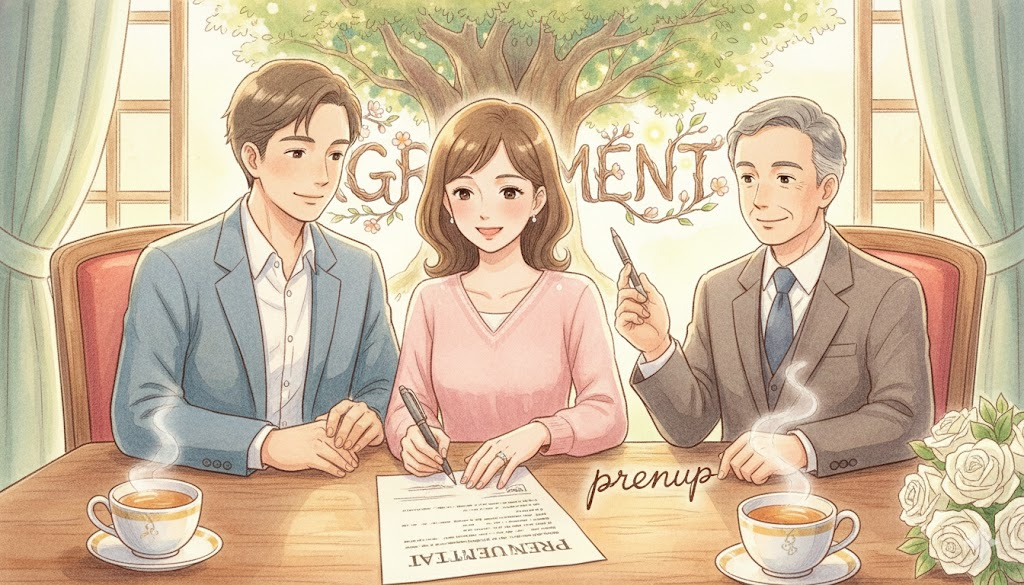 - 해석: 결혼 전에 부부가 이혼 시 재산 분할 등을 미리 정해두는 계약입니다.