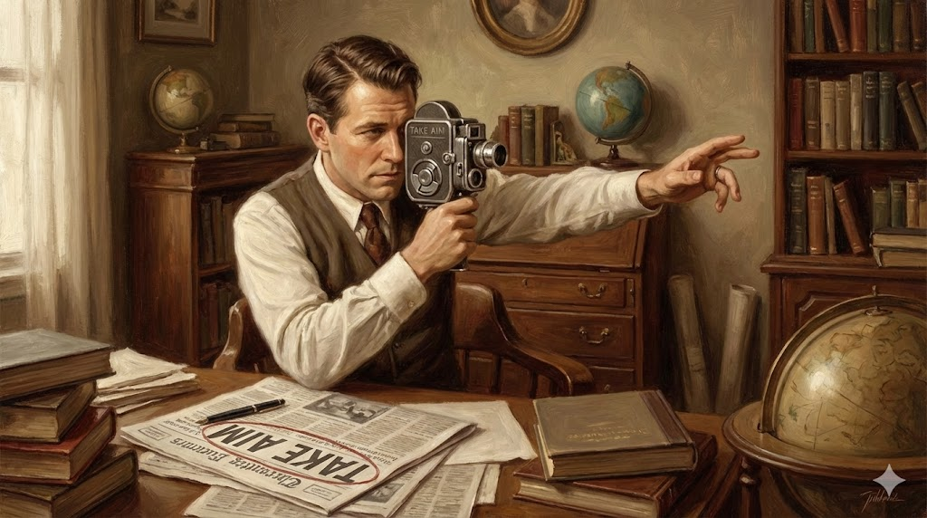 - He aimed the camera at the sunset. (그는 카메라를 석양에 겨누었다.)