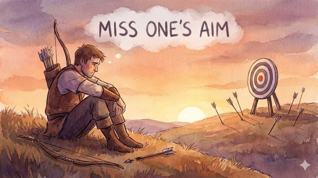 - 해석: 겨냥한 표적을 맞히지 못하거나 의도했던 결과를 얻는 데 실패하는 것입니다.