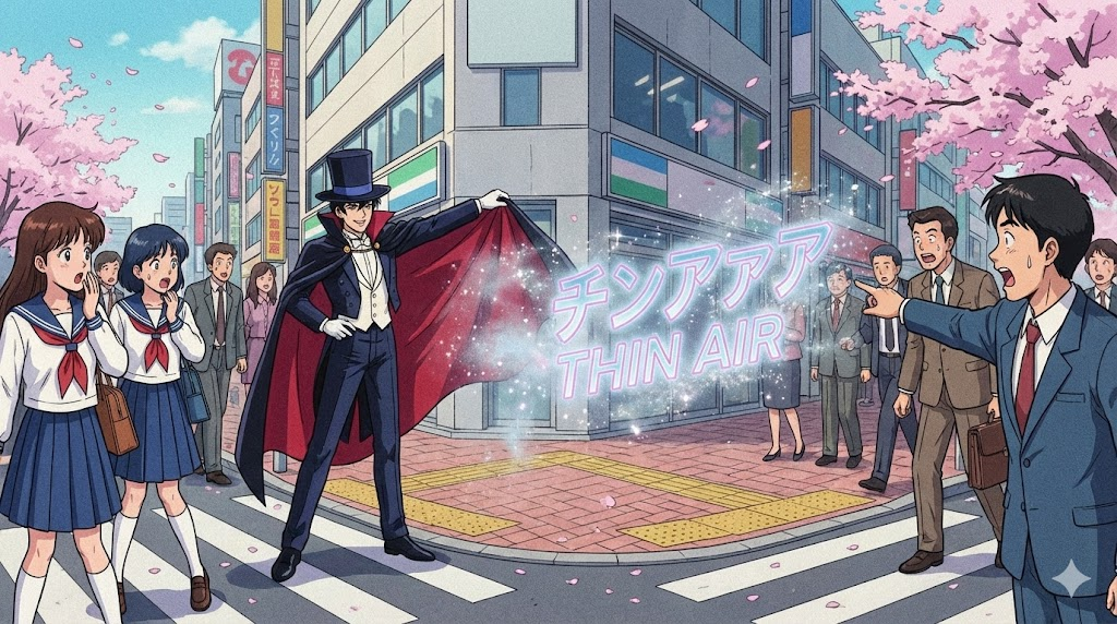 주로 "vanish into thin air" (감쪽같이 사라지다)나 "out of thin air" (난데없이 나타나다)라는 표현으로 쓰입니다. 눈에 보이지 않는 공기 속으로 사라지거나 거기서 뚝 떨어진 것처럼, 논리적으로 설명할 수 없는 갑작스러운 등장이나 퇴장을 강조합니다.
