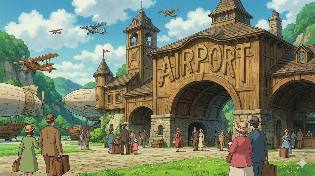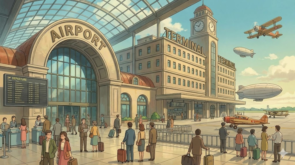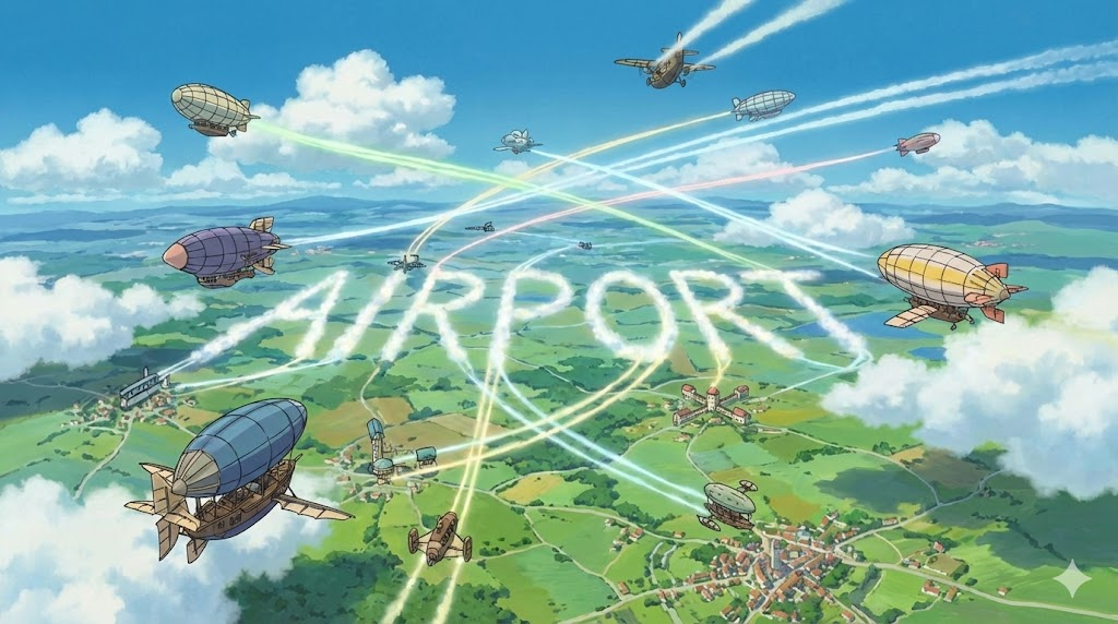 | 종합 뉘앙스 | (1) 하늘(air)을 여행하는 비행기들이 정박하는 항구(port). (2) 승객과 화물이 하늘길로 드나드는 관문. | 하늘의 항구 |