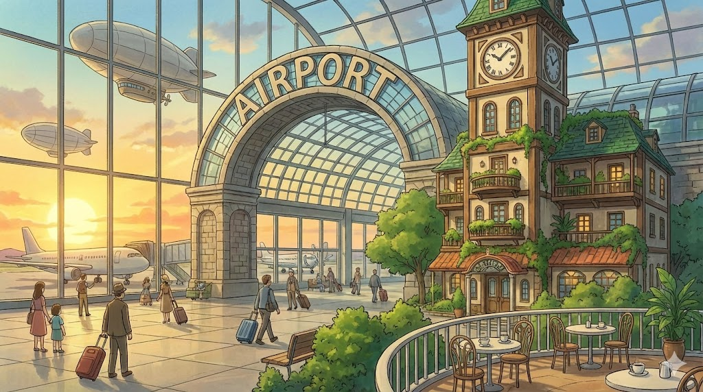 공항 터미널 내부나 공항 바로 옆에 위치한 호텔입니다. 주로 이른 아침 비행기를 타야 하거나, 환승 대기 시간이 긴 승객, 혹은 비행