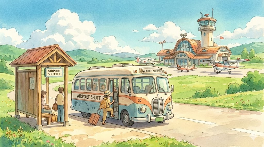 - 해석: 공항 터미널 간을 이동하거나 공항과 도심/호텔 사이를 오가는 버스입니다.