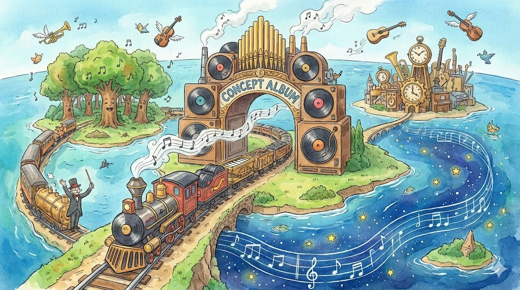 예술 지문에서 Concept Album은 대중음악이 단순한 오락을 넘어 **서사(Narrative)**와 **주제 의식(Theme)**을 갖춘 예술 형태로 발전했음을 보여주는 예시로 언급됩니다. 개별 곡이 아닌 앨범 전체의 유기적 구성을 이해하는 것이 중요합니다.