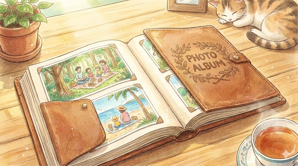문학이나 수필 지문에서 Photo Album은 단순한 물건이 아니라 **"과거의 기억(Memory)"**이나 **"향수(Nostalgia)"**를 불러일으키는 매개체로 등장합니다. 앨범을 넘기는 행위는 과거를 회상하거나 시간의 흐름을 성찰하는 장면 묘사에 자주 쓰입니다.