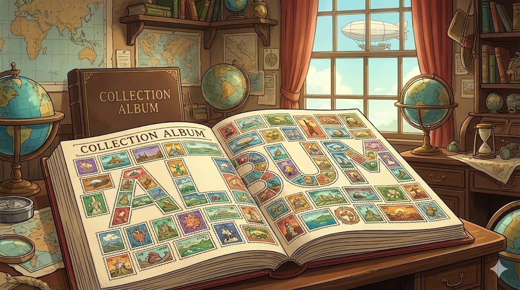 해석: 그녀는 방대한 우표 **수집품(앨범)**을 가지고 있다.