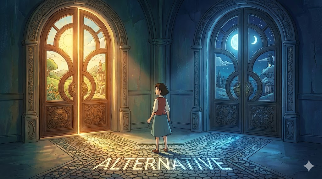 | alter (라틴어) | '다른 하나', '또 다른' | 현재의 것 말고 선택할 수 있는 다른 하나. | 다른 선택 (The Other) |
