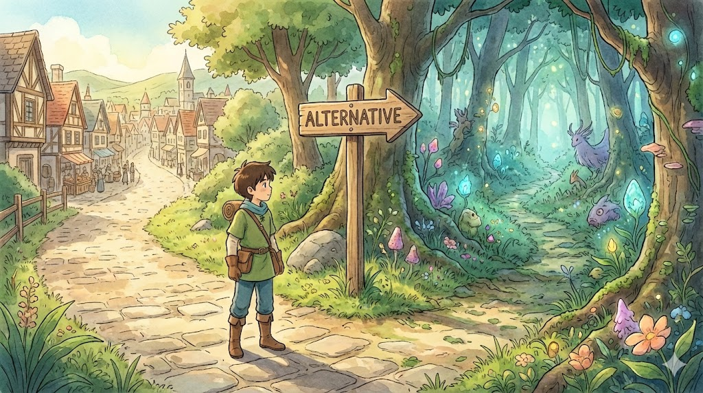 대안, 대체. 기존의 것을 대신할 수 있는 새로운 선택지, 강요된 선택(없음), 그리고 현실적 가능성.
