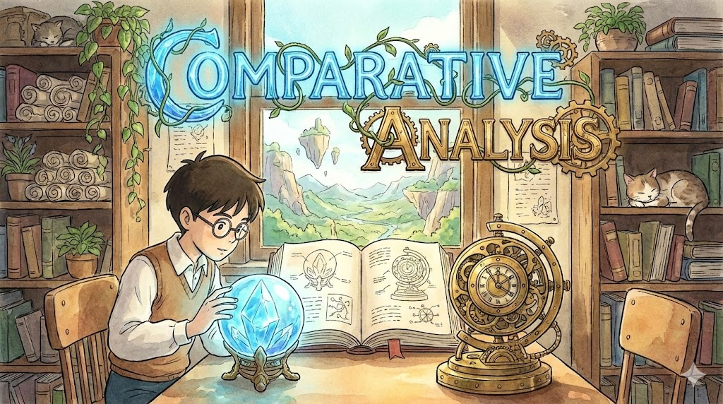 두 개 이상의 대상(제품, 이론, 데이터 등)을 나란히 놓고 공통점과 차이점을 면밀히 따져보는 것을 말합니다. 어떤 것이 더 우수한지, 또는 서로 어떻게 다른지를 파악하기 위해 사용됩니다.