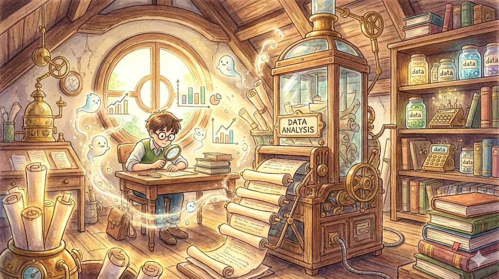 수집된 방대한 데이터를 수학적 확률과 통계 기법을 이용해 분석하여, 의미 있는 패턴이나 추세를 찾아내는 과정입니다. 과학 연구, 여론 조사, 빅데이터 처리 등에 쓰입니다.