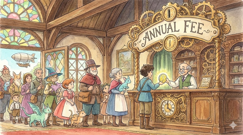 - 해석: 신용카드나 멤버십 서비스 등을 유지하기 위해 1년에 한 번씩 내야 하는 요금입니다.
