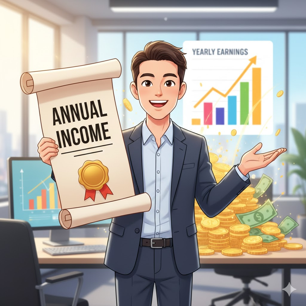- 해석: 개인이 1년 동안 벌어들이는 총수입을 의미합니다.