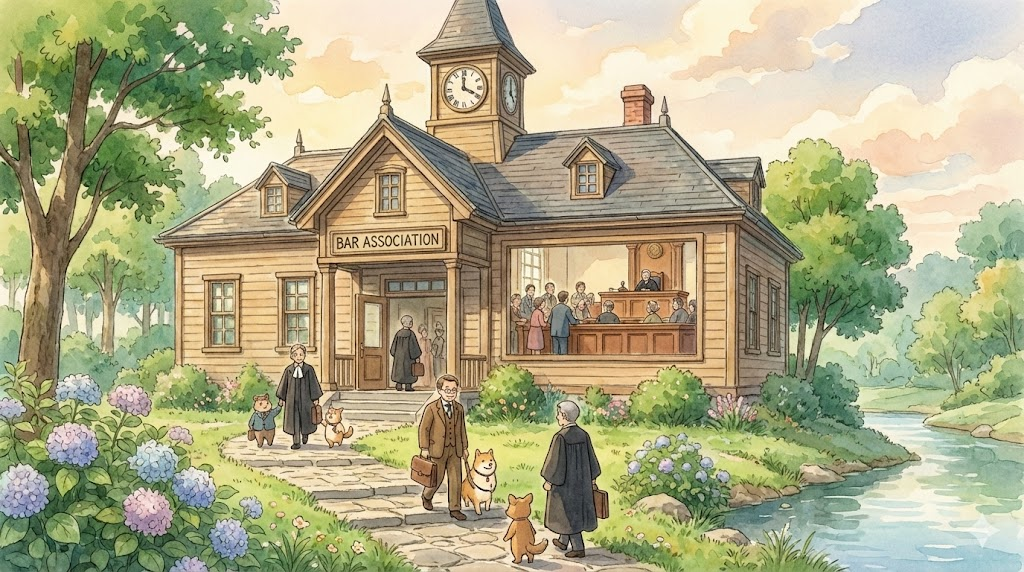 - 해석: 변호사들의 직무 활동을 감독하고 권익을 대변하는 법조인 단체입니다. (Bar Exam: 사법 고시)