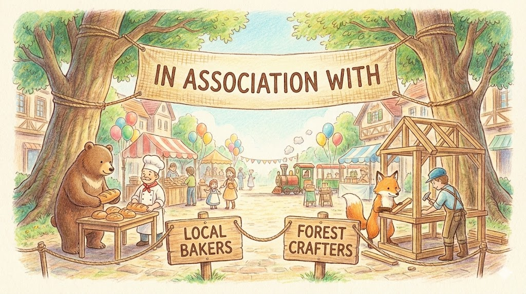 - 예문: The event was organized in association with local charities. (그 행사는 지역 자선 단체들과 공동으로 조직되었다.)