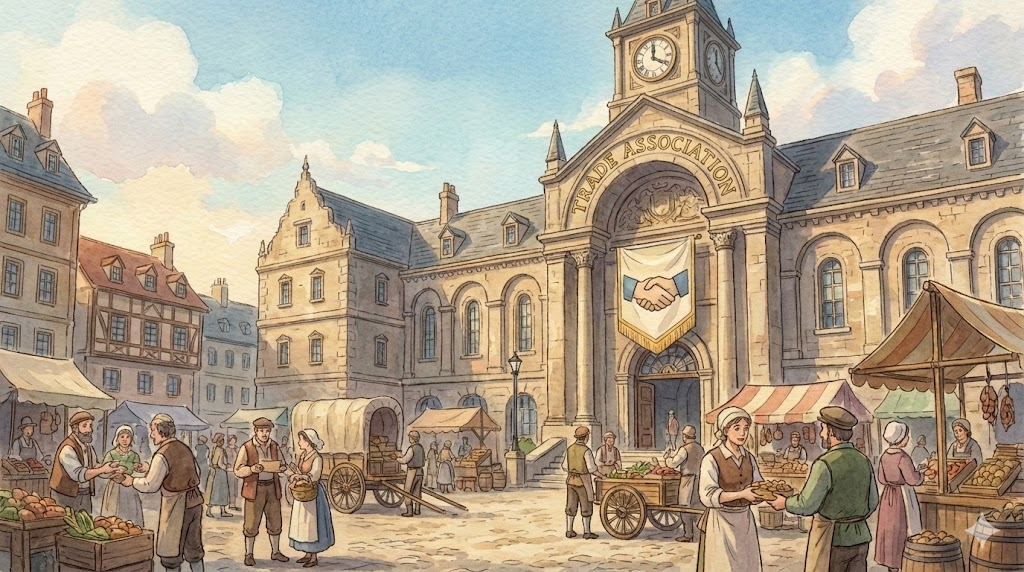 - 해석: 같은 산업이나 장사에 종사하는 기업들이 이익을 보호하기 위해 만든 단체입니다.