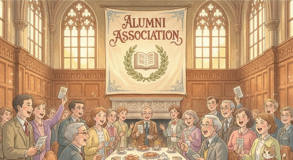 - 해석: 같은 학교나 대학을 졸업한 사람들의 모임입니다. (alumni: 졸업생들)