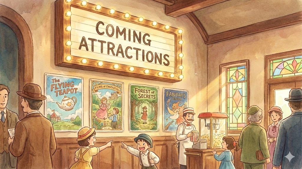 - 예문: We sat down early to watch the coming attractions. (우리는 예고편을 보기 위해 일찍 자리에 앉았다.)