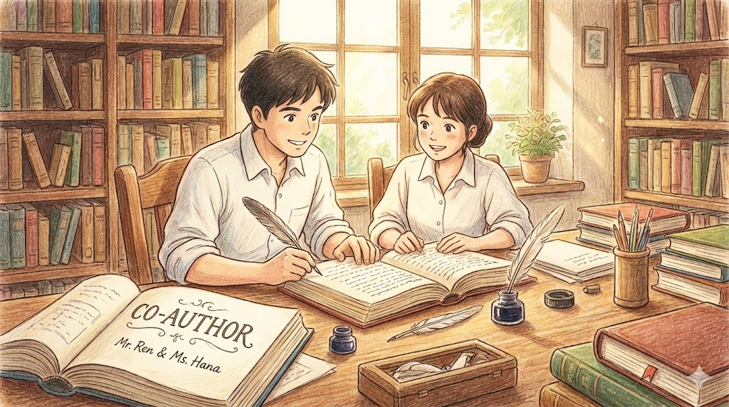 혼자서 책이나 논문을 쓰는 것이 아니라, 두 명 이상의 사람이 협력하여 함께 쓴 경우, 그 파트너를 가리킵니다. 학계나 출판계에서 매우 흔한 개념입니다.