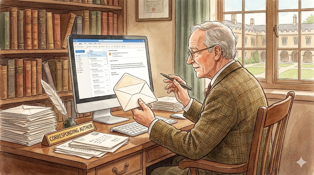 논문을 저널에 투고하고, 심사 위원이나 독자들의 문의(correspondence)를 전담해서 받고 답장을 보내는 책임자를 말합니다. 주로 연구실의 책임자나 교수가 맡습니다.